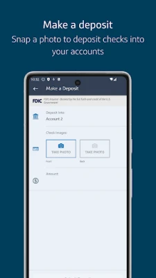 • Deposit checks directly into your accounts with the snap of a photo.