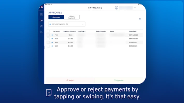 CitiDirect® offers a mobile experience for payment review, authorization, initiation, and release.