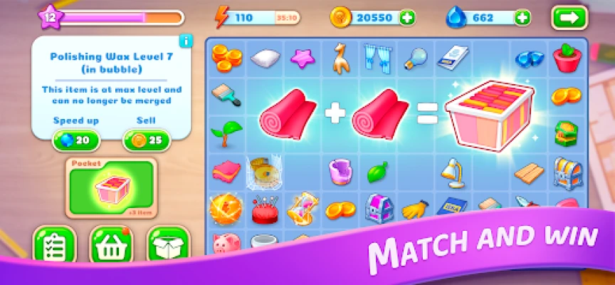Solve fun puzzles and complete levels after levels of this addictive merge game. Grow trees in your merge garden for quality timber and sell extra items to get coins for your home makeover project. Receive rewards for your manor renovation progress and gratitude of your clients who will become your friends.