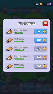 💰 INVEST IN THE FUTURE: You can also buy upgrades for resource production speed and greater profit. Upgrades apply to all facilities producing one type of material, and also carry across levels in the game, so you get to keep the benefits.